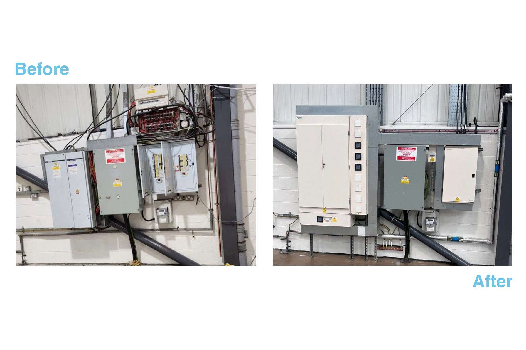- Complete new mains distribution including individual metering (all on site fabrication & wiring from in house engineers)